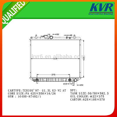 Back to Product Details- Image for High Quality Auto Radiator FOR DAIHATSU TERIOS'97- G1.3L K3-VE OEM 16400-87402/1