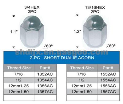 Universal 2-PC SHORT DUALIE ACORN WHEEL LUG NUT