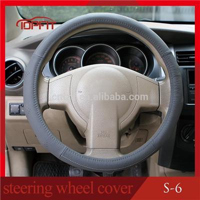 Classic Design Grey Leather Steering Wheel Cover Automobile