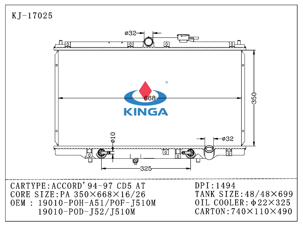 OEM No/Model: 19010-POH-A51/POF-J510M 19010-POD-J52/J510M