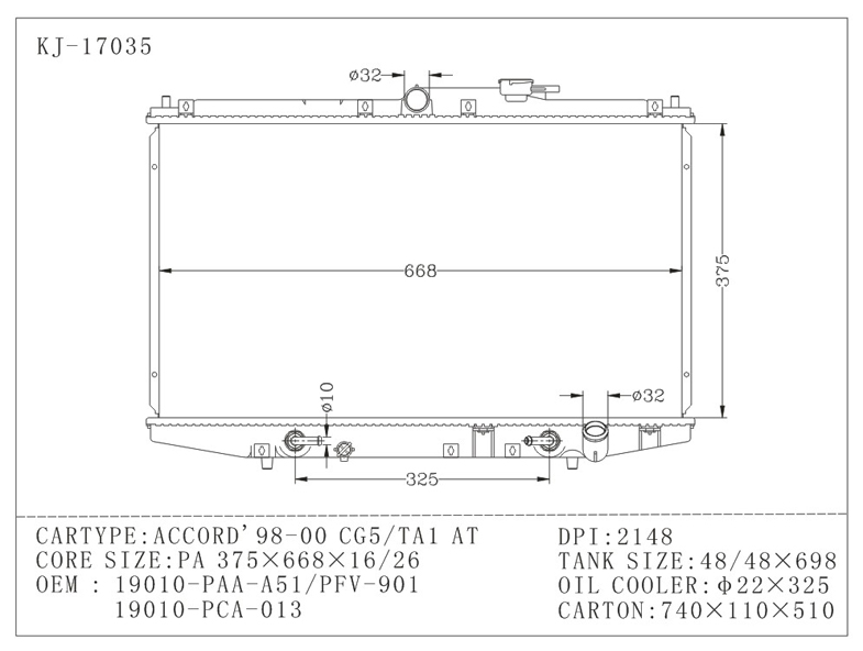 OEM No/Model: 19010-PAA-A51/PFV-901 19010-PCA-013