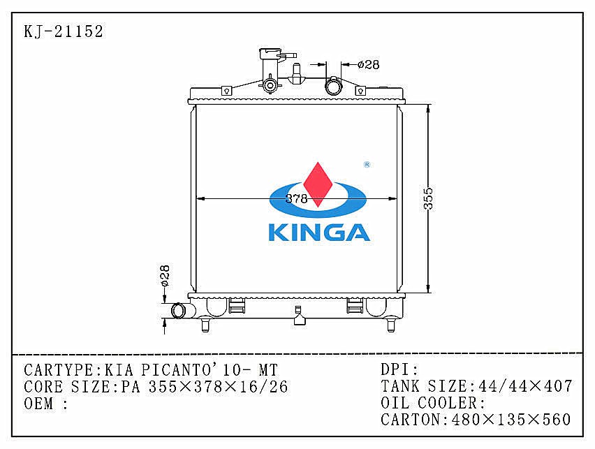 Hyundai Auto Radiator For KIA PICANTO'10- OEM:25310-07500 AT