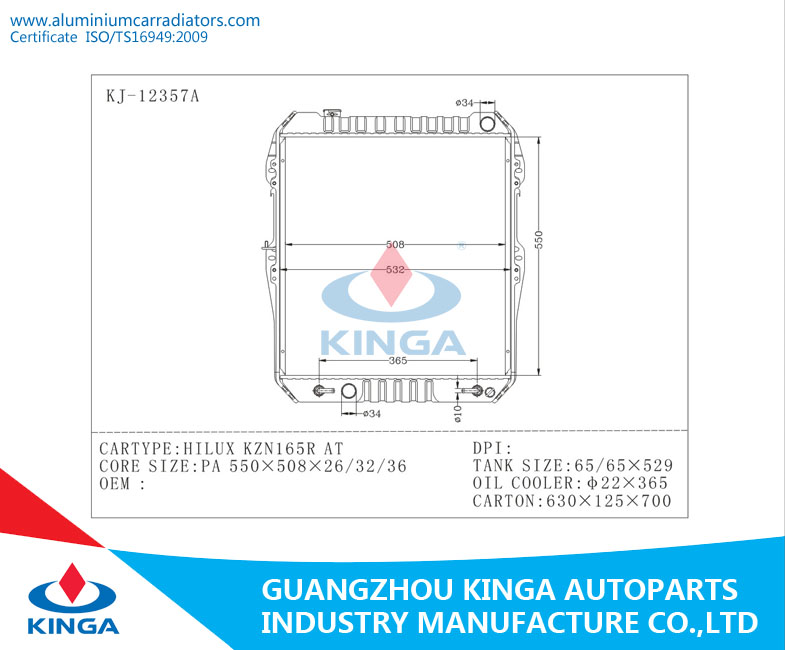 Auto Cooling System Toyota Radiator For HILUX KZN165R AT