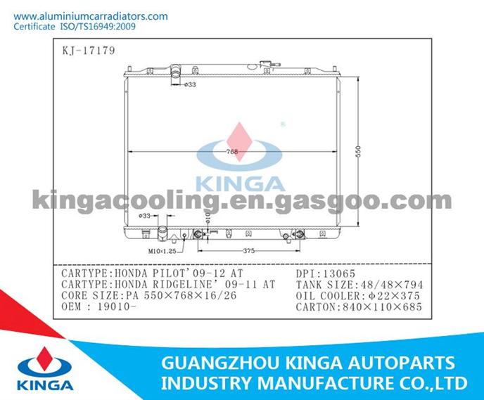 Car Radiator Aluminum Engine Cooling For HONDA 2009-2012 PILOT / HONDA 2009-2011 RIDGELINE Automatic