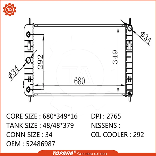 TOPASIA used for CHEVY 04-08 MALIBU 2.2L L4 2198CC 134 CID RA10063 OEM NO: 52486987 NEW RADIATOR ASSEMBLY