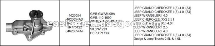 OEM Quality AMC Engine Water Pump 4624054 Used For Jeep Cherokee Engine Repairing