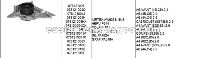 OEM Quality AMC Engine Water Pump 078121006 Used For A6 AVANT (4B,C5) 2.4