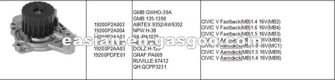 Replacement Parts AMC Engine Water Pump 19200P2A003 Used For CIVIC V Fastback Engine Repairing