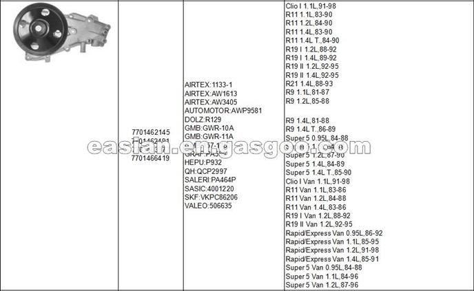 Factory Price AMC Engine Water Pump 7701462145 Used For Clio I 1.1L,91-98 Engine Repairing