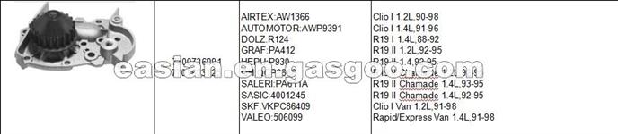 OEM No/Model: 7700736091 7701633125