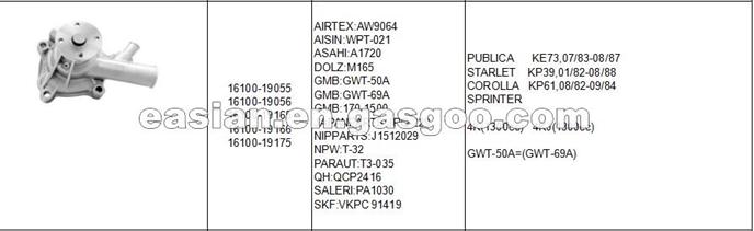 HIGH Quality AMC Engine Water Pump 16100-19055 Used For PUBLICA Engine Repairing