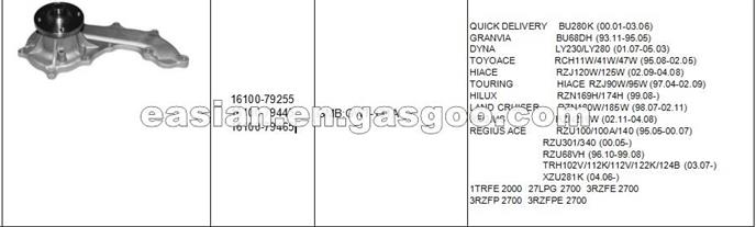 OEM No/Model: 16100-79255 16100-79445 16100-79465