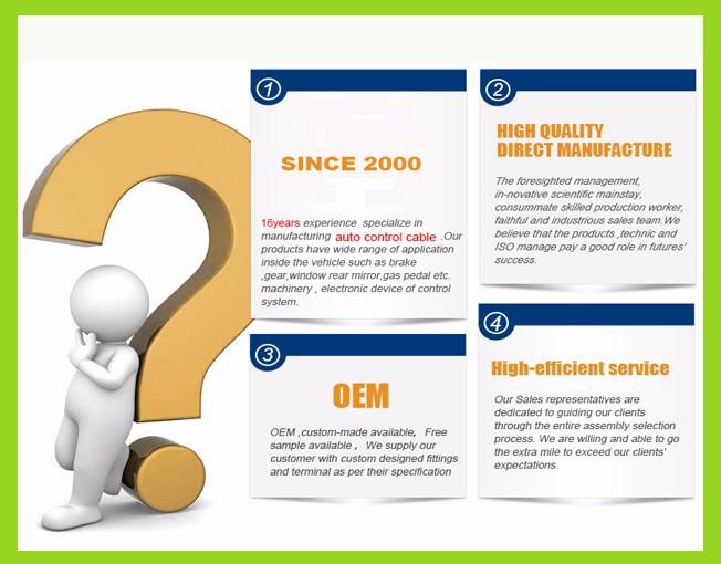 A: We produce almost every kind of auto control cables.