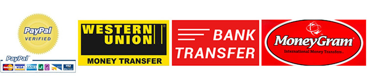 For the payment we can accept by PayPal, Western Union, T/T Bank Transfer, Money Gram, Alibaba Escrow, the best safe way for your choice.