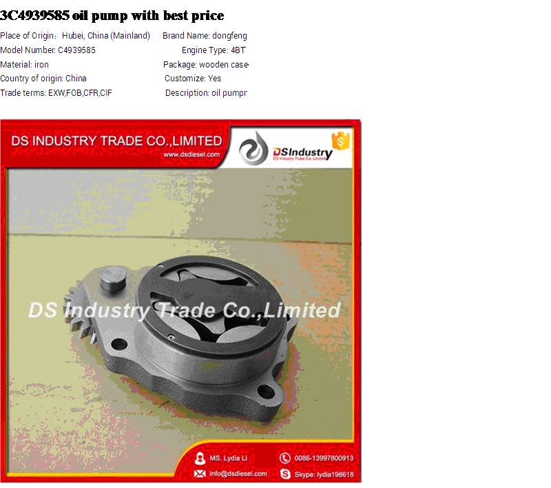 We can supply DCEC, CCEC, Genuine, and Neutral package for 4BT 6BT diesel engine Lubricating Oil Pump 4939585