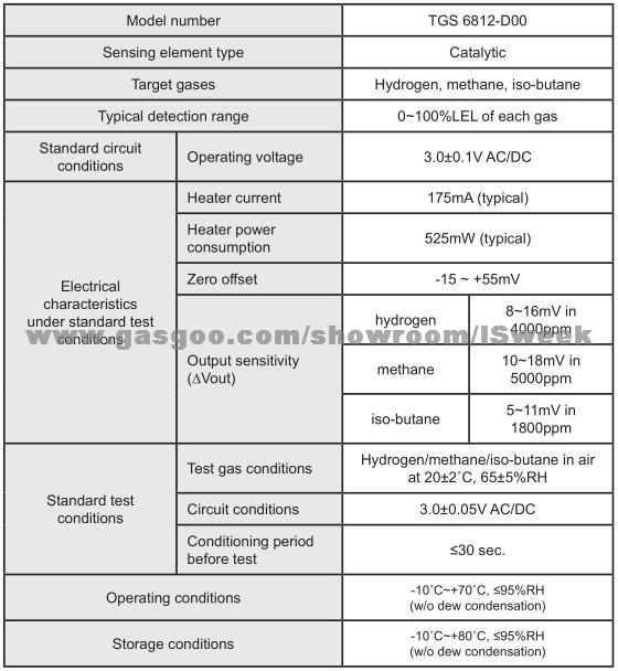 TGS6812-D00 for the detection of Hydrogen Methane and LP Gas