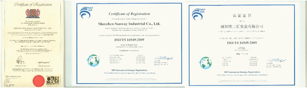 We provide our products with high quality, shortest delivery time, competitive price and more professional service. As an ISO 9001:2008-certified company and ISO/TS 16949-certified factory, with CE, E-Mark and FCC approvals, we continuously work with overseas partners to strengthen our position in the global market.