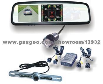 Double screen backing car radar with sight and voice (four cameras) Inner rearview type, automatic displaying road situation after the car when backing High pixel colorful 2.5" or 3.5" LCD Real lady's voice report distance, LCD digital display roadblock's orientation Automotive CMOS chip, hard operation environment endurable Two or four cameras, full color Operating voltage: 12V/24V Operating temperature: -40C--+80C Distance ranging: 0.4m-2m
