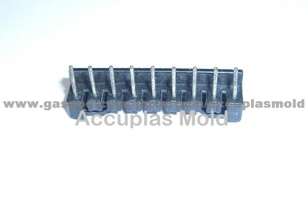 Part function: Connector for Electronic Device Part Size: 45X17X23mm Tool Size: 350X250X315mm Part material: PA66 Insert steel: H13 Cav. QTY: 1X4 Gate: Sub-gate Ejection: Ejection Pins