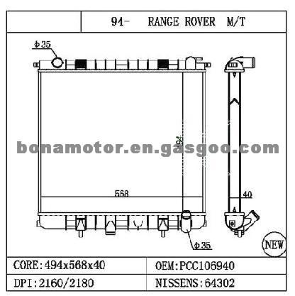 Specifications: - Application: LAND ROVER - OEM: PCC106940 - AIRTEX:64302A - Thickness: 40mm - brazing / MT - Year: 94-95