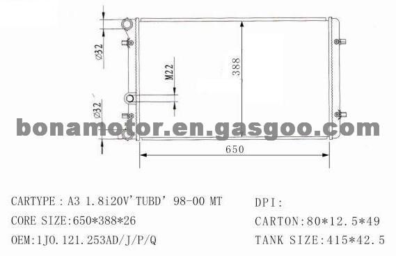 1- Description: radiator, a/c radiator, auto radiator 2- Used for AUDI A3 /AUDI TT /VW GOLF V