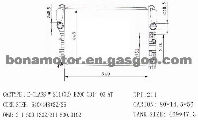 1- Description: radiator, a/c radiator, auto radiator 2- Used for For BENZ E-CLASS W211(02) E200 CDI'03AT