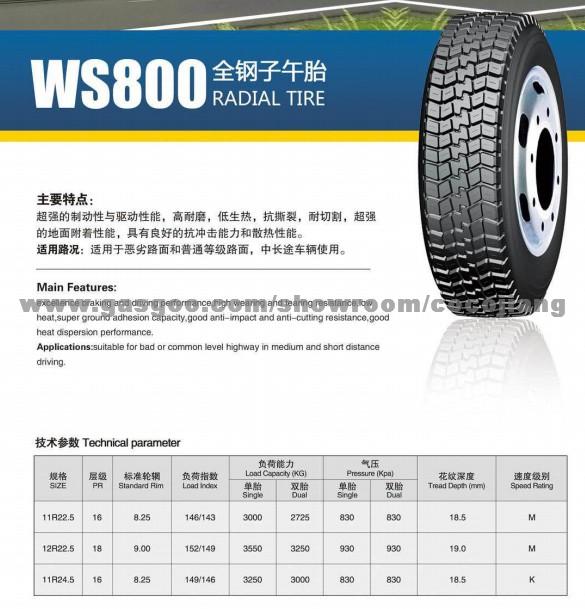 WS800 Radial tire: (11R22.5,12R22.5,11R24.5)