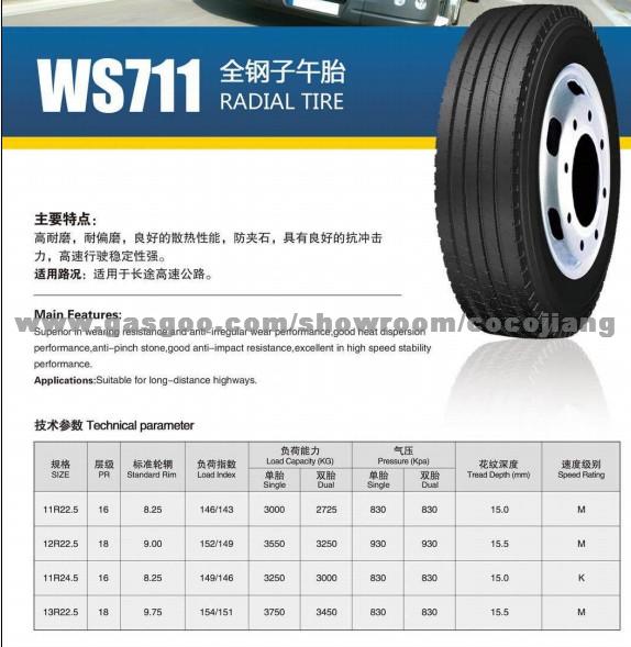WS711 Radial tire (11R22.5, 12R22.5,11R24.5,13R22.5)