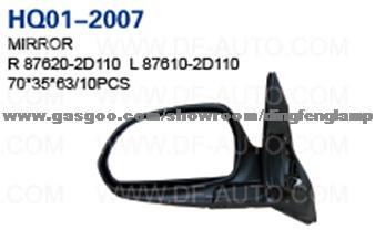 Product Name: Mirror OEM No/Model: R87620-2D110 L87610-2D110 Application:Hyundai Model: HYUNDAI ELANTRA'2004 Mirror; Manufacture No.: HQ01-2007; OEM: R87620-2D110 L87610-2D110 Packing: 70*35*63cm/10pcs HYUNDAI, KIA, DAEWOO, CHEVROLET, Toyota Head lamp, Tail lamp, Fog lamp, Side lamps, Corner lamp, Grille, Bumper, Bumper Support, Mirror, Mug guard, Hood, Boot, Fenders, Wanter tank frame, Fan shroud ect 7 REASONS TO CHOOSE DINGFENG: 1. Quick inquiry feedback; 2. Short lead time; 3. Quick delivery service; 4. Good shipment tracing; 5. Good quality; 6. Best price; 7. Quick customer complaint feedback. Please kindly send us your inquiry if you need any items from us. We have the ability of developing for customer according to the samples. Welcome any inquiry for any auto parts.