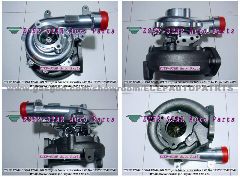 Product Description CT16V 17201-OL040 17201-0L040 17201-30110 17201-30160 TURBO Fit for TOYOTA Hilux HI-LUX/Landcruiser 3.0L D4D ViIGO 3000 2005- Engine:1KD-FTV 173HP
