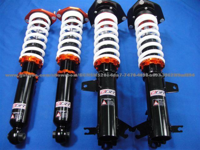 DGR is a professional manufacturer which specializes in the production of buffers. We posses many years of research & development and performance testing. We have gained a wealth of technical experience through independently producing high quality OEM goods for world renowned suspension brands. The height adjustable of iron materials, agree Standard of EURO. Made of very fine SAE 9254 steel which were used to construct Racing Logic Springs. Piston rods made of high rigidity steel meet the needs for racing, drifting and competition. Stainless bearing washer. A hard rubber upper mount reduce or eliminate notice efficiently. Original pillow ball upper mounts for each individual model of the vehicles. Pillow ball upper mounts are designed and developed to improve steering response and performance. (It can be easily adjusted to meet all the conditions whether it is on the road or on the racing tracks .With the system it helps drivers to reach their best performance. ) 30-level of damping adjustable,it will enhance the adjustability and improve the communication between drivers and the road conditions.