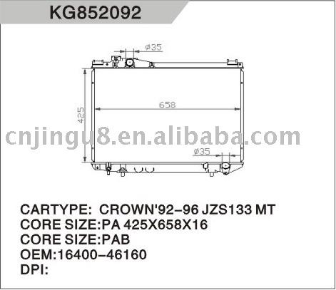 CARTYPE:TOYOTA CROWN JZS133 CORE SIZE:425*658 TANK SIZE: 678*48 OEM:16400-46160 A/MT:MT PA:16/26 PAB:23
