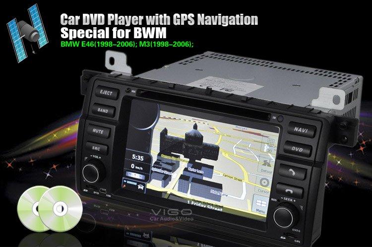 This model is for following BMW car models:BMW 3 Series:1998 to 2001-E46(BMW Old 17-Pin connector)BMW 3 Series:2002 to 2005-E46(BMW new 40-Pin connector)7'' HD Car DVD GPS for BMW E4616:9 Fixed TFT LCD monitor, digital screen with resolution 800*480 pixels(RGB) touch screen with Graphical User Interface.Built-in Bluetooth, support A2DPBuilt-in GPS NavigationFront USB port Front 2 SD card slots, one for map, one for MusicFront panel keys comes with red backlight Built-in TV tuner, compatible with PAL/NTSC/SECAM_L TV system. DVD/VCD/CD/MP3/MPEG4/DIVX/CD-R/WMA/JPEG are compatible. Built in FM/AM tuner, preset 30 stationsmusic or radio while in GPS Navigation modeBuilt in 4×45W amplifier ,4ch audio outputSupport subwooferBack up rearview camera inputAuto rear viewing functionMute at telephone calling Picture adjustment (brightness, contrast, color, settings)Card size Full function remote controlSupport Ipod controlWith treble/medium/bass adjust functionSteering Wheel control portsBuilt in RDS