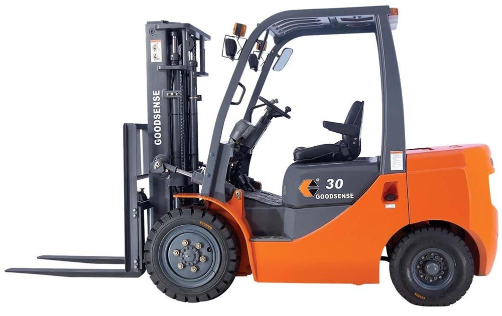 FD30B-W1 DIESEL FORKLIFT SPECIFICATIONGeneral1Model FD30B-W1 2Power Type Diesel3Rated Capacitykg30004Load Centremm500Characteristic&Dimension5Lift Heightmm30006Free lift heightmm1257Fork SizeL×W×T mm1070×125×458Mast Tilt AngleF/RDeg6°/12°9Front Overhang (Wheel center to fork face)mm48710Rear overhangmm44811Ground ClearanceBottom of mastmm14012Overall DimensionLength to face of fork(Without fork)mm267013Overall Widthmm122514Mast Lowered Heightmm206515Mast Extended Height(With backrest)mm415016Overhead Guard Heightmm209017Turning Radius (outside)mm241518Min. right angle asisle widthmm2120Performance19SpeedTravel (No load)km/h1920Lifting (Full load)mm/s50021Lowering(Full load)mm/s40022Max.Drawbar Pull(Full load)kn1323Max.Gradeability (No load/Full load)%20Chassis24TireFrontmm28×9-15-12PR25Rearmm6.50-10-10PR26TreadFrontmm100027Rearmm98028Wheelbasemm170029Service weightkg4390Power&Transmission30BatteryVoltage/CapacityV/Ah12/9031EngineModel C240 PKJ32Manufacture ISUZU33Rated output/r.p.m.kw34.5/250034Rated torque/r.p.m.N·m139/180035No.of Cylinder 436Bore×Strokemm86×10237Displacementcc236938 Fuel Tank CapacityL7039TransmissionType Powershift 40StageFWD/RVS 1/1