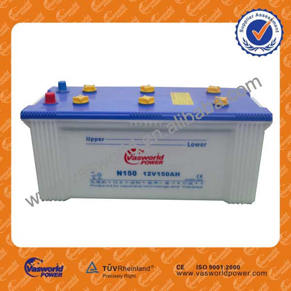 wholesale Chinese manufactory Japan technology JIS Standard N150 12v 150ah dry charged car battery price for dubai market