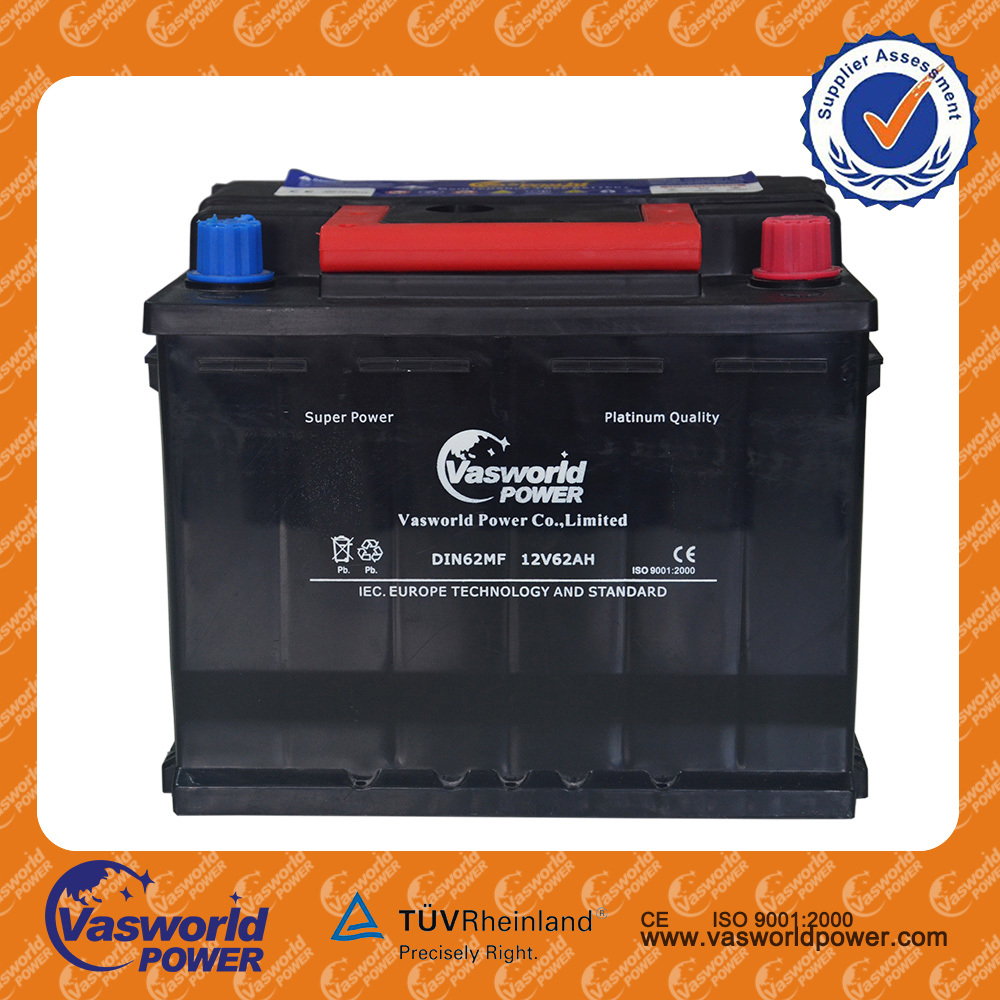 Maintenance free car starting battery 12v62ah DIN standard factory pirce for sale