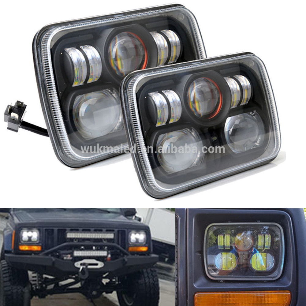 Product Description- Product Name: Square Projector 7x6 5X7 inch LED Headlights H4 Light For Jeep Wrangler YJ Cherokee GMC