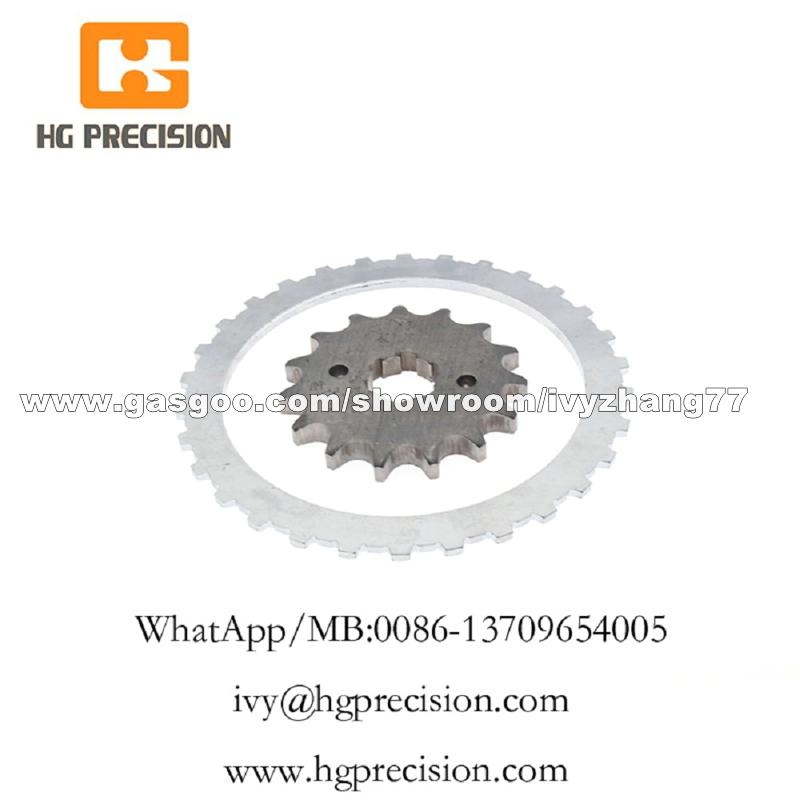 Sprockets Fine Blanking For Motorcycle Drive System Fine blanking is a one hit production process for precision sheet metal parts. When the need is to manufacture high quality components with better flatness, surface finish, better dimensional tolerances, the solution is fine blanking. Unlike conventional methods like casting, forging, chip removal machining etc. there is no need for secondary operations like milling, grinding, drilling etc, whats more, the part processed is ready for assembly immediately. Fine blanking gives you the power of versatility. Creative design solutions like bending, semi-piercing, countersinking, deep drawing etc are possible by combining cold forming with fine blanking. About the sprocket fine blanking, HG Precision is fully equipped to meet your demands for both fine blanking and creative forming so that you get the advantage of cost savings, reduced process time, fast operations and course parts that are of outstanding dimensional, flatness and shape accuracy. Fine blanking works through total precise process control. This is done through a coordinated action between a triple action fine blanking press (separate regulation facility for total pressure, v-ring pressure and counter/ejection pressure) and a fine blanking tool. The fine blanking tool is a specially designed complete press tool with a v-ring and an extremely small die clearance. HG Precision brings to bear its expertise in all areas of operation right from process metallurgy and tool engineering to press design, to give customers the very best in fine blanking.
