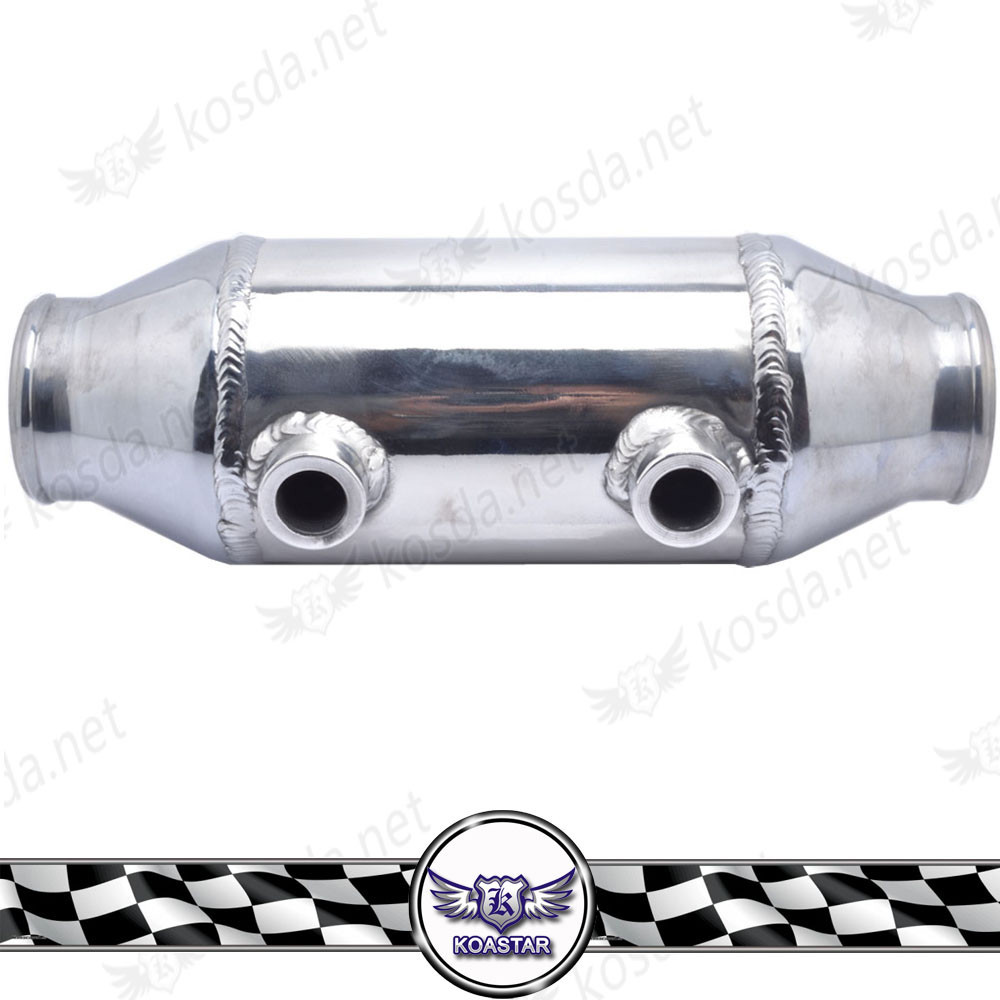 - The inlet and outlet of this intercooler have a straight flow "barrel" design, with one on opposite ends.
