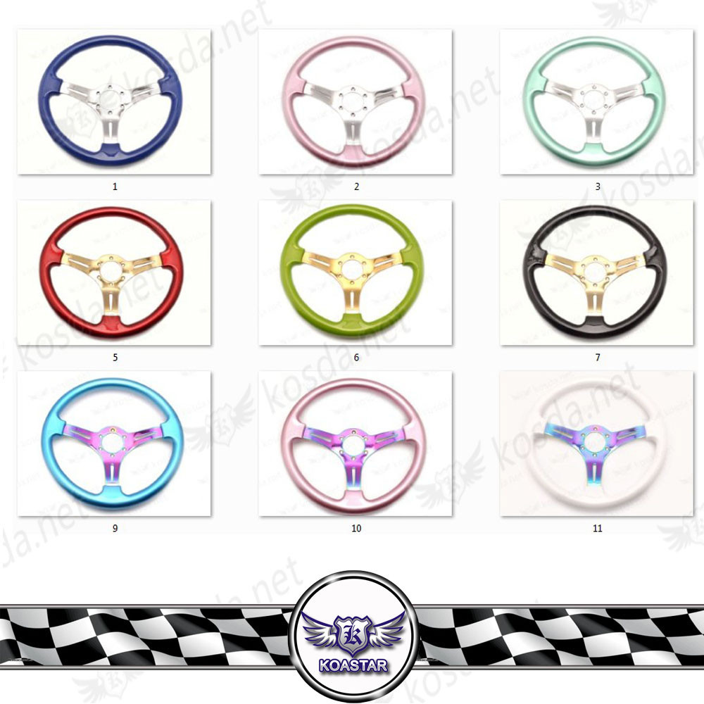 The racing car steering wheel is hot sale style and constructed of high quality ABS materials,with wood ,red,yellow ,black ,etc . Also with Neo Chorme spoke will make the interior of your vehicle more attractive and decorative and gives you the perfect driving experience. Besides, it is universal fitment.