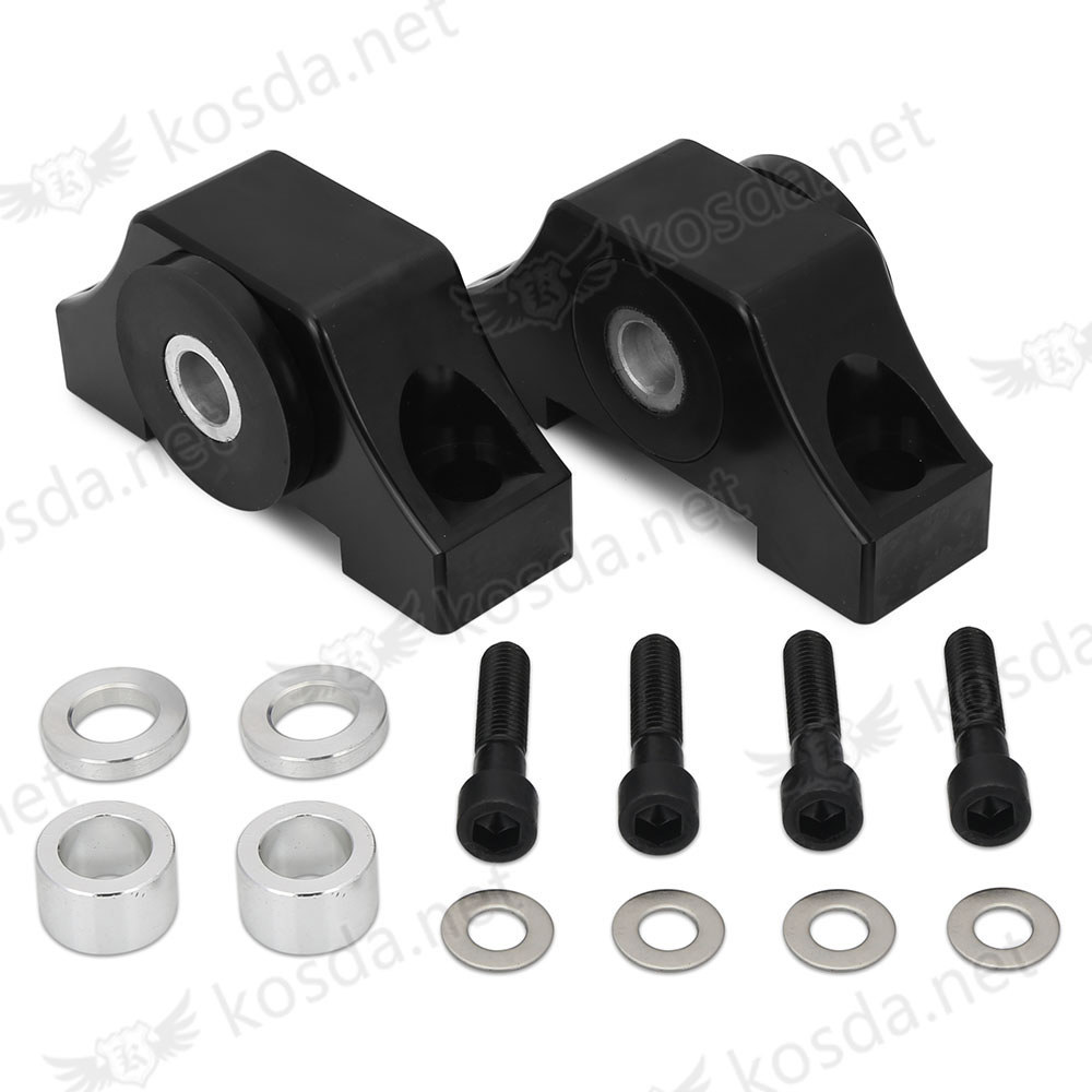 -Comes with High Density Wear Resistant Polyurethane bushing inserts, with billet aluminum bolt sleeves. Mounts under the front rail and replaces the weak O.E.M. mounts.