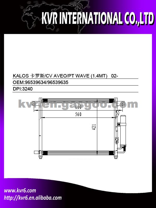 Condenser For Hyundai MODEL: KALOS 02- O E M : 96539634/96539635 D P I : 3240 NISSENS : 94641 if you have any questions,please email to us