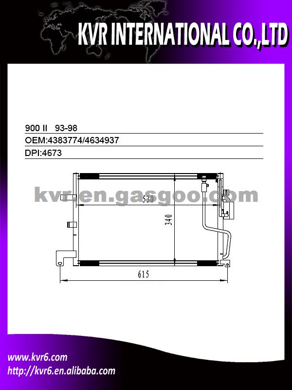 Condenser Specifications: 1) Suitable for:SAAB 93-98 900 II 2) Oem number:4383774/46344937 3) Nissens:94259 4) Aim market:Euro,Middleeast,Russia,Middle&South America 5) Gurantee:1 year warranty against B/L date
