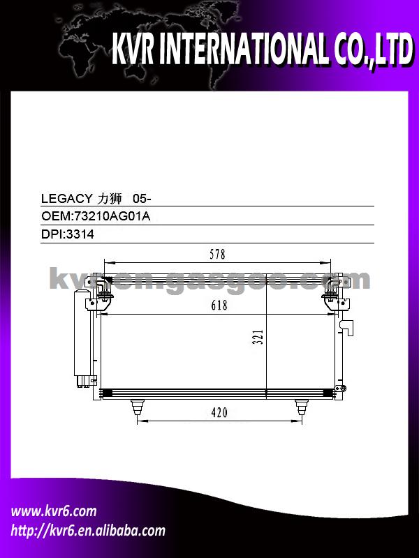 Condenser Specifications: 1. Oem number:73210AG01A 2. Suitable for:05-09 LEGACY 3. Aim market:Euro,Middleeast,Russia,Middle&South America 4. Gurantee: 1 year warranty against B/L date 5.REMARK:5MM 7. DPI:3314 8. NISSENS: 94885 9. AVA: SUA5073 We are a professional exporter and supplier of auto spare parts. We are a subsidiary company of HK Weirui Holdings. We mainly Produce auto radiator, auto heater, auto condenser, auto evaporator,intercooler and Truck radiator for the cooler parts, at the same time our Group invest our new plants on auspension parts, such as CV joint, Shock absorber, clutch, we have export many in 2012 , Our high quality parts have been distributed to clients in many countries and areas, such as Europe, America, South America, Africa, the Middle East and Taiwan area.