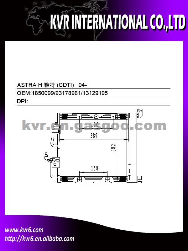 Condenser Specifications: 1) Suitable for:OPEL 04- ASTRA H/ZAFIRA B (CDTI) 2) Oem number:1850099/93178961 3) Nissens:94768 4) AVA:OL5368 5) Aim market:Euro,Middleeast,Russia,Middle&South America 6) Gurantee:1 year warranty against B/L date