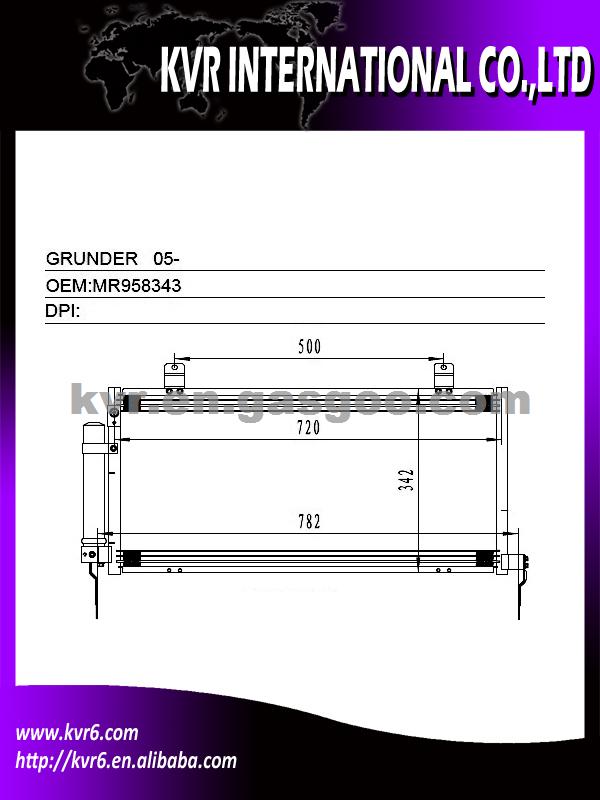 Product Specifications: 1. Oem number:MR958343 2. Suitable for:05- GRUNDER (TAIWAN) 3. Aim market:Euro,Middleeast,Russia,Middle&South America 4. Gurantee: 1 year warranty against B/L date 5. NISSENS : 940164 6. AVA:MT5221 Well packed and protected