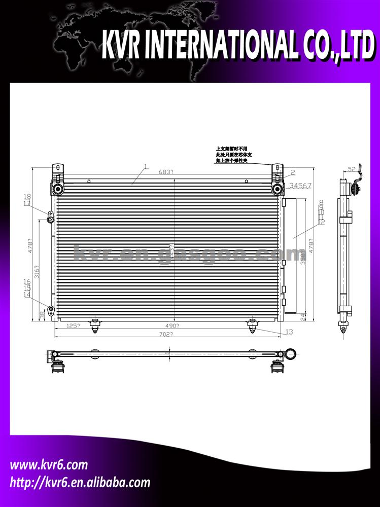 Product Specifications: 1. Oem number:88460-52100 2. Suitable for:2001-07 Toyota Highlander/2008 Yaris/ 3. Aim market:Euro,Middleeast,Russia,Middle&South America 4. Gurantee: 1 year warranty against B/L date 5. CORE SIZE(mm):722x446x16 6. AVA:TO5413 7. NISSEN: 940369 Well packed and protected