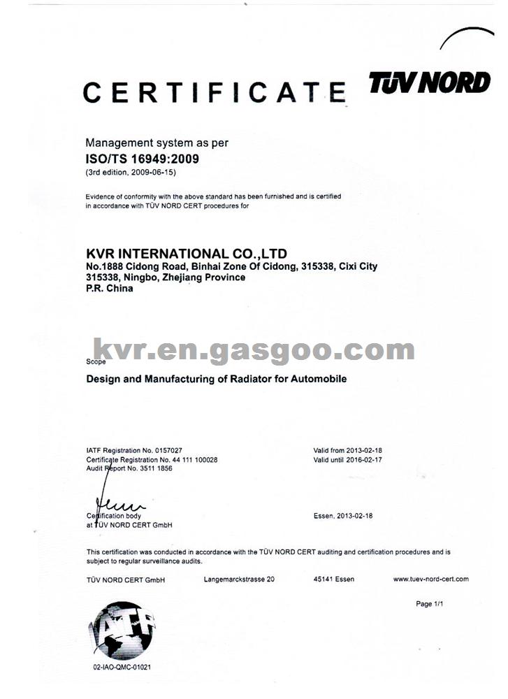 Certification:ISO9001/TS16949