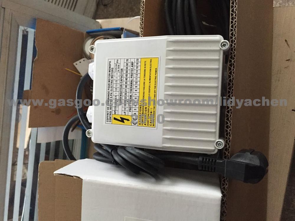 Application Protection and control of a single-phase submersible electric pump for 4" wells. Specification Maximum relative humidity: 50% at +40º C, Wall mounted with fins. Plastic enclosure. Incorporated capacitor. Main switch with manual-reset thermal device. Protection and power indicator light.1