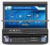 7inch car DVD player feature: 1. One Din panel 7"(16: 9) TFT LCD Monitor 2. Built-in BULETOOTH, touch screen 3. Full system ( Built-in VHF/ UHF TV tuner ) TV receiver 4. Built-in AM/FM radio runer 5. Built-in CD Ripping function 6. Support SD/MS/MMC memory card and USB device 7. Fully automatic motorized TFT LCD flip-out and up with TFT LCD tilt and L/R angel adjustment 8. Compatible with MP4(AVI/DIVX/3.X/5.X),DVD,VCD,SVCD,CD.MP3.JPG; 9. Support RDS function 10. Front panel AUX interface 11. Super ESP(Electronic Shock Proof) 12. 60WATTS x 4PEAK POWER